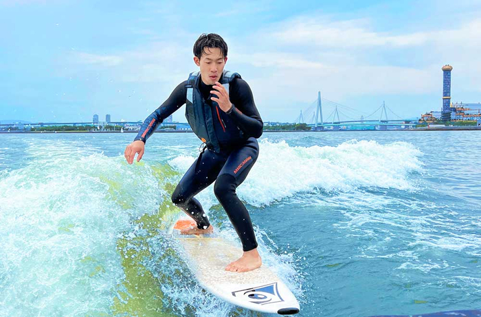 ウェイクサーフィンは、走行するボートから発生した引き波の力を利用して波に乗るマリンスポーツです。 船が進む限り同じコンディションの波が発生するので、初心者の方にもおすすめです。 ある程度の基礎スキルさえあれば誰でもロングライドが可能になります!