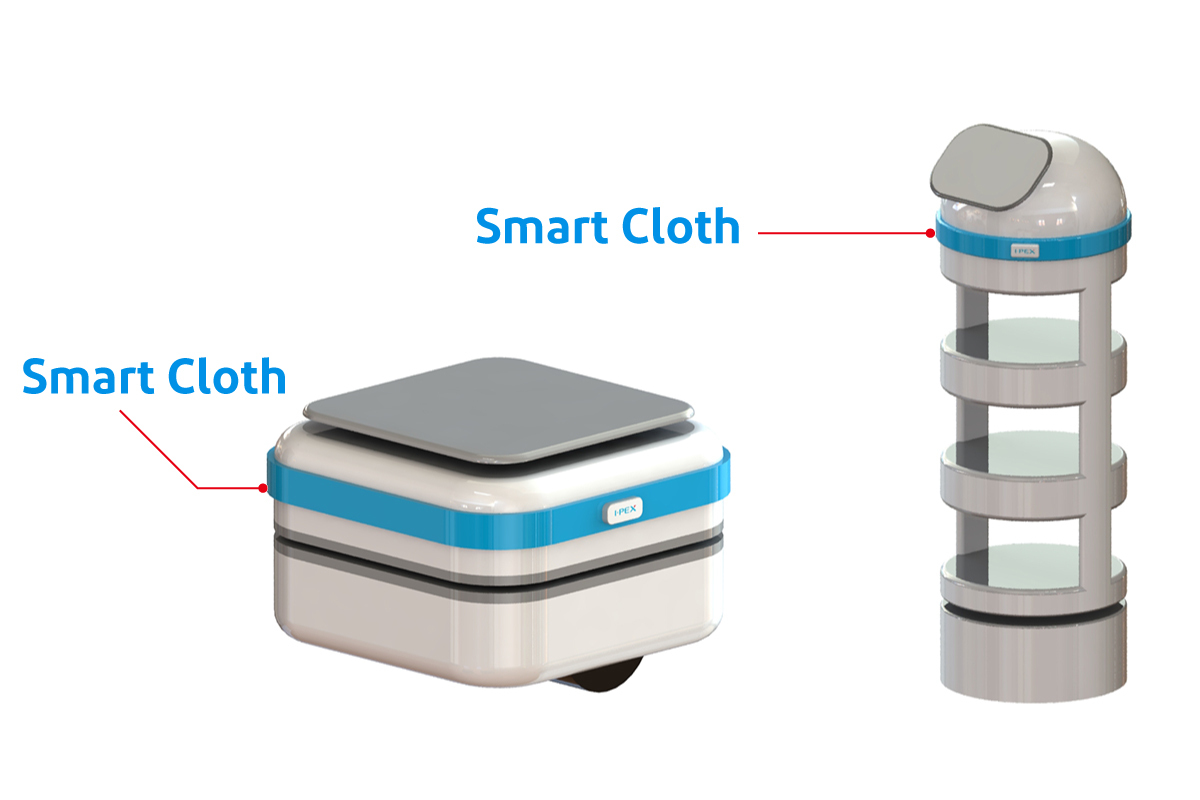 I-PEXでは電気を通す布素材(導電布)に着目し、布素材による伸縮性や折り曲げても壊れない柔軟性に加え、自由に形状を変更可能でさまざまなロボットに使用できる汎用性や、既存のロボットに後付けできる取付性を兼ね備えた「Smart Cloth」の開発に至りました。