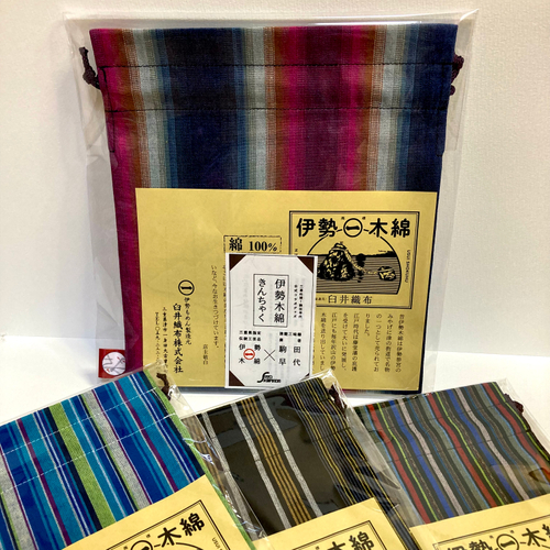 伝統的な伊勢木綿の柄を取り入れた巾着は、実用性と美しさを兼ね備えたアイテムです。柔らかく丈夫な木綿素材は、使い込むほどに風合いが増し、長く愛用できます。実用的なサイズ感が日常使いにぴったりで、他には無い完全オリジナルデザインで仕上げられた特別な商品です。伝統工芸ならではの上品なデザインが、小物入れや旅行時のポーチとしても活躍します。