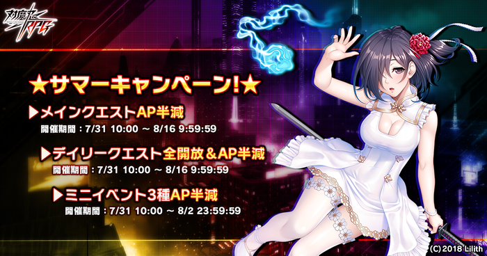 開催期間中、AP半減やデイリークエスト全開放等、お得なキャンペーンが開催されます。