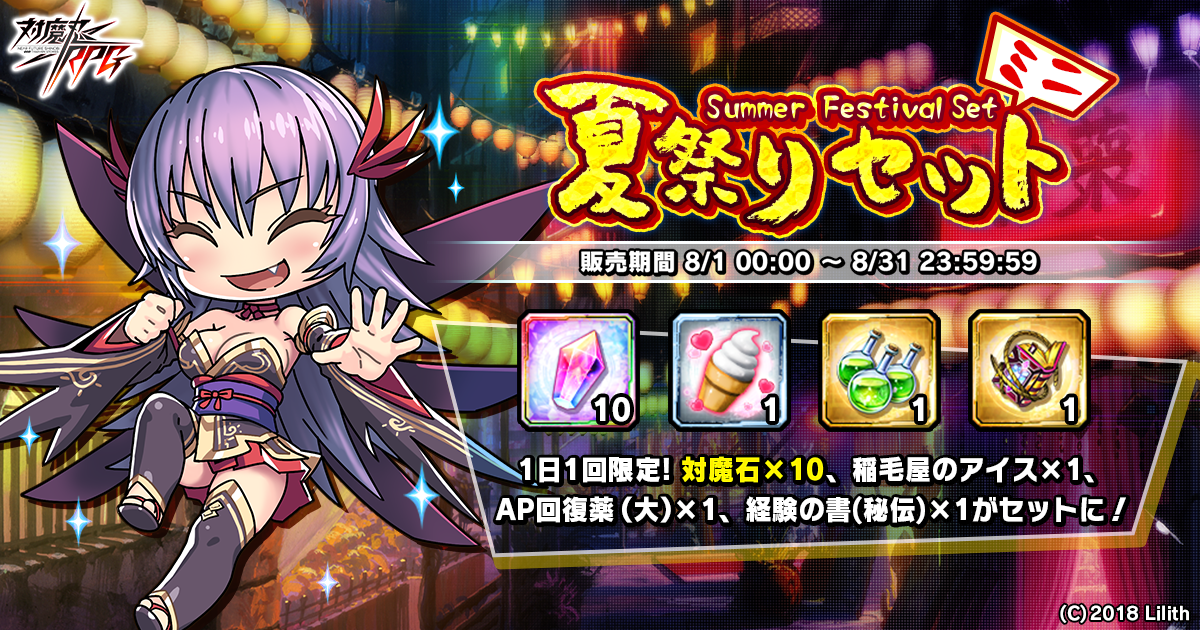 販売期間中、1日1回限定で購入できる「対魔石(有償)×10」や、「稲毛屋のアイス×1」等が含まれたお得なセットです。