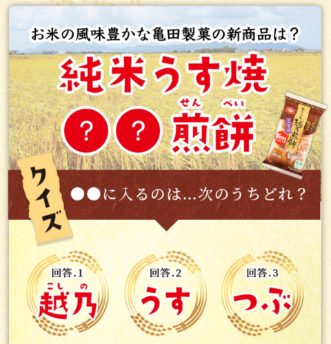 ●「お米の風味豊かな越乃煎餅 新発売」キャンペーンサイト