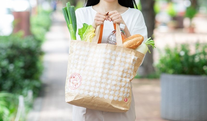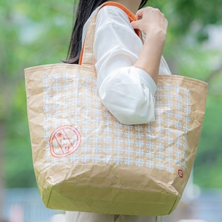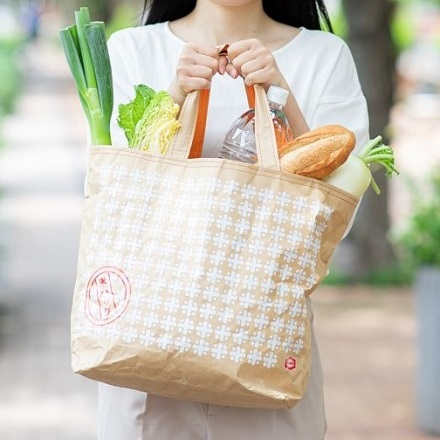 重い荷物を入れても大丈夫な「オリジナル米(マイ)袋バッグ」は、肩掛けはもちろん、手提げとしてもお使いいただけるサイズ感。普段のお買い物に活躍いたします。