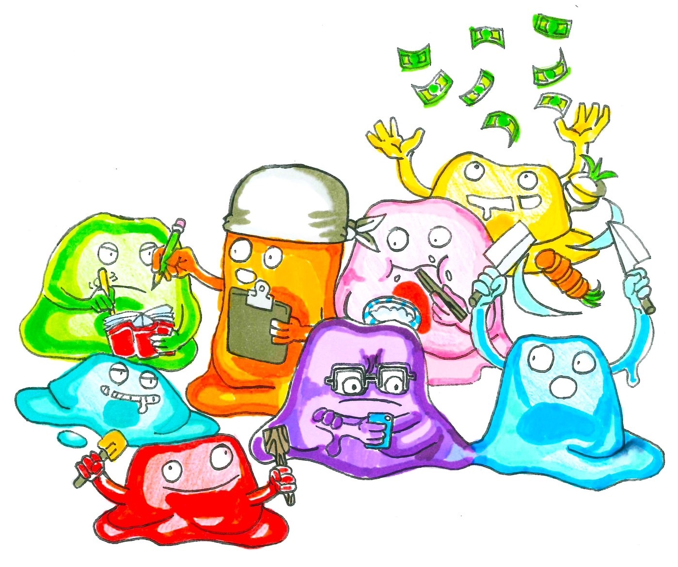 飲食店経営者に宿る気味のわるい生物(考えや性質のようなもの)はまさにスライムです。スライム状態になっている飲食店経営者が、少しの知恵と行動でスライムから脱却して進化できるようにという意味も込めています。