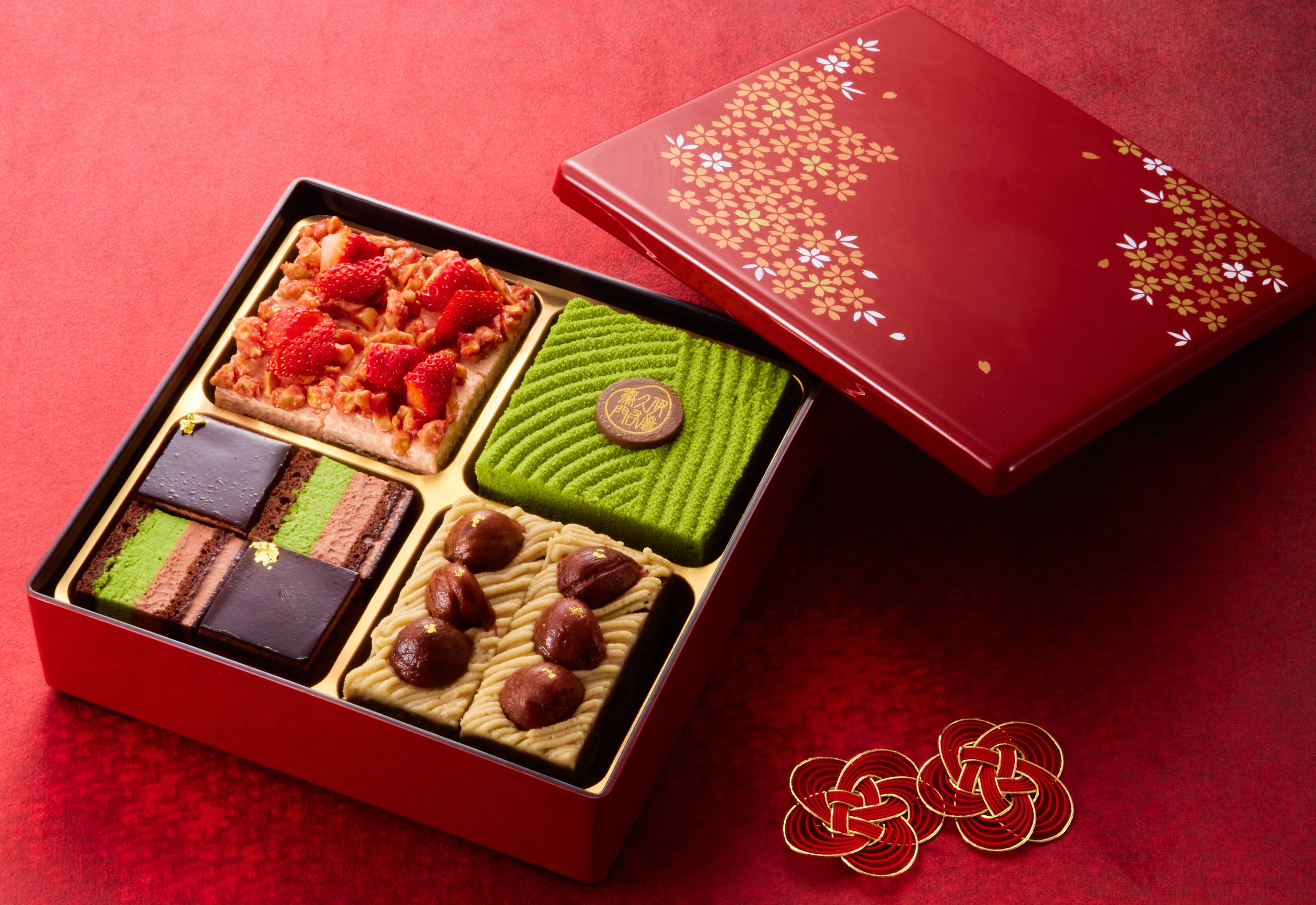 特別なお祝いごとや大切な記念日など、とっておきのシーンを彩るスイーツをお届けしたいと当店のグランシェフが考案した「茶菓ノ四季」。宇治抹茶と季節のフルーツや素材を組み合わせ、春夏秋冬を表現した4種のスイーツはどれも魅力が詰まった自信作です。スイーツはお重に詰めることで、華やかさを一層演出いたしました。宇治本店に併設された宇治菓子工房にて、抹茶パティシエが一つ一つ丁寧に手作業でお作りしているため、製造数に限りのある限定商品です。