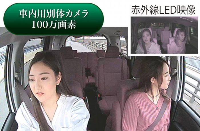 前方と車内を同時録画 車内は赤外線LED搭載で夜間に対応!