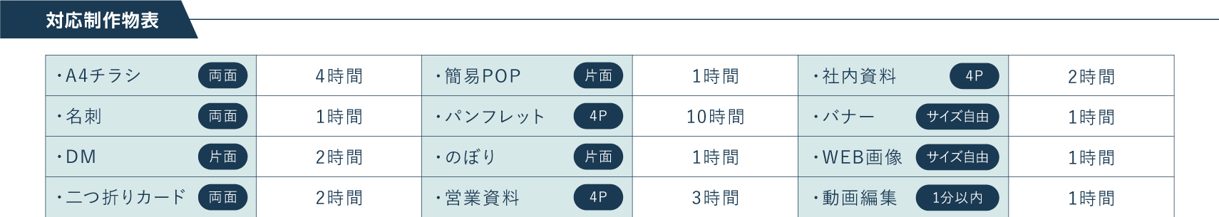 ※印刷や製造、写真や動画の撮影、イラスト作成は別途費用が発生します。別途費用につきましては、営業担当がお見積もりいたします。