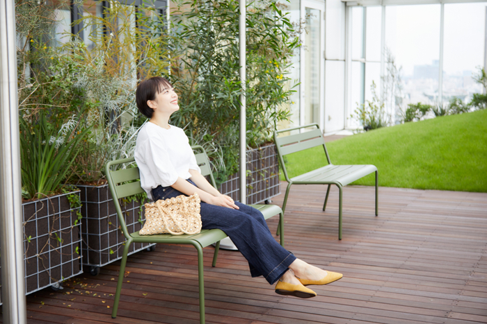 密集した立木を間引くことによって木の生育を助けたり、採光性を高めたりする間伐。その際に伐採された「間伐材」の樹皮を原料として作った「和紙糸」を「Oito」では使用しています。建築用としての需要が少ない間伐材をどう活用していくかが課題となっているなかで、「和紙糸」はその糸口となる可能性を秘めています。肌にあたる部分(靴の内側・インソール)は「和紙糸」を使い、靴の外側は汚れに強い「リサイクルペット糸」を使用した二層構造。環境へ配慮した素材を全体に使いつつ、靴を履く人の心地よさも両立させています。