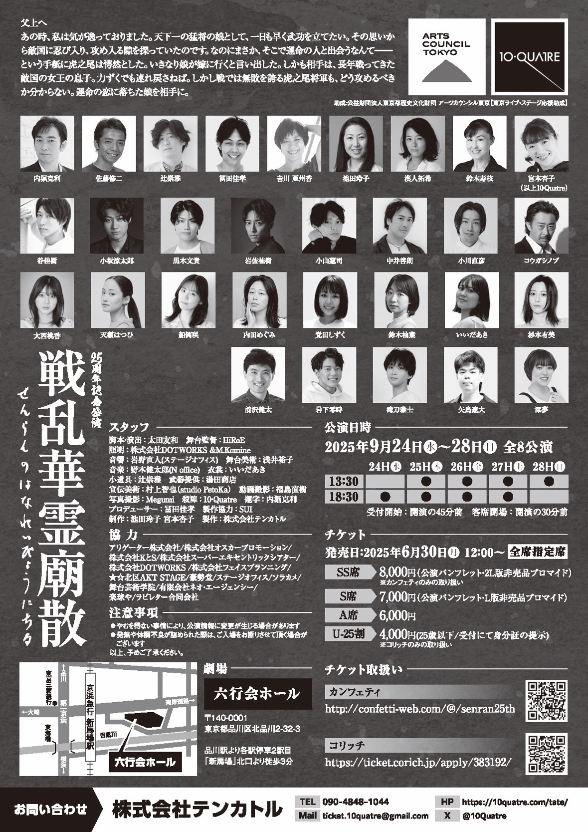 「活きた剣」で観客を魅了して来た10·Quatre 25周年記念公演『戦乱華霊廟散』で六行会ホール初進出決定!