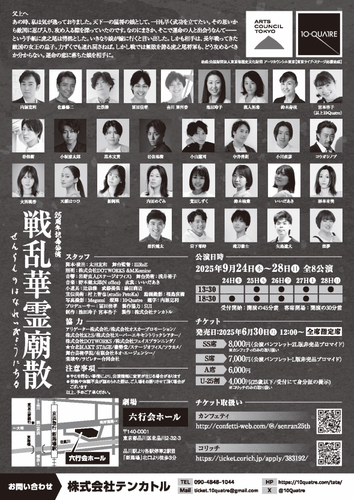 『戦乱華霊廟散』が2025年9月24日 (水) 〜 2025年9月28日 (日)に六行会ホール(東京都 品川区 北品川 2-32-3)にて上演されます。