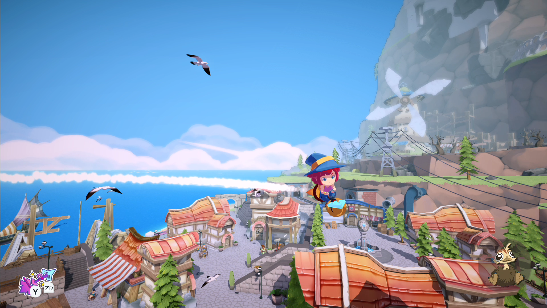 ・ほうきに乗って自然あふれるミニオープンワールドの世界を隅々まで探索しましょう。
