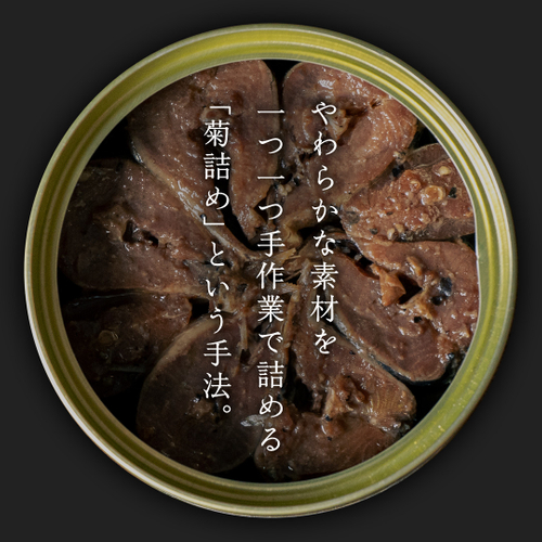 さんまやいわしの身を缶詰の中に花びらのように詰める「菊詰め」という手法は、大変手間のかかる作業ですが、魚の身が崩れにくく、見た目の美しさにもこだわっています。