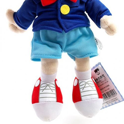 お待たせしました、コナン君です。こちらのコナン君はサイズがMなので、さきほどまでご紹介したぬいぐるみよりも一回り大きいです。