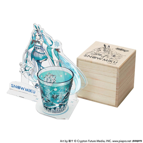 『初音ミク』と伝統工芸・江戸切子のコラボ第3弾! 『雪ミク』をイメージした江戸切子グラスが登場 描き下ろしイラストを使用したアクリル展示台付き