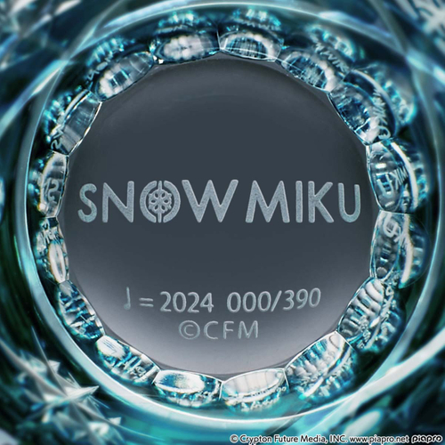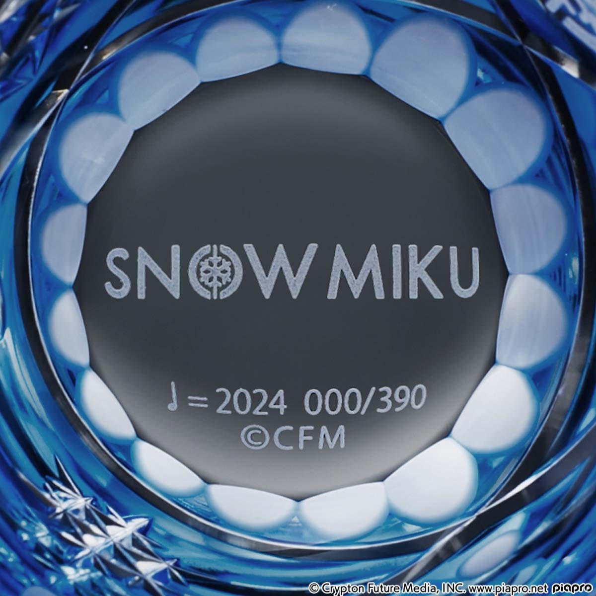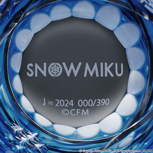 薄瑠璃色と花浅葱色、それぞれのグラスの底には、「SNOW MIKU」ロゴと1~390のエディションナンバーが刻印されます。
