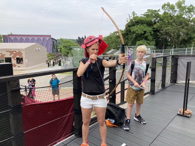 ①「弓矢チャレンジ」/ゴジラ迎撃作戦のストーリーになぞらえて、弓矢でゴジラの的当てに挑戦するゲーム