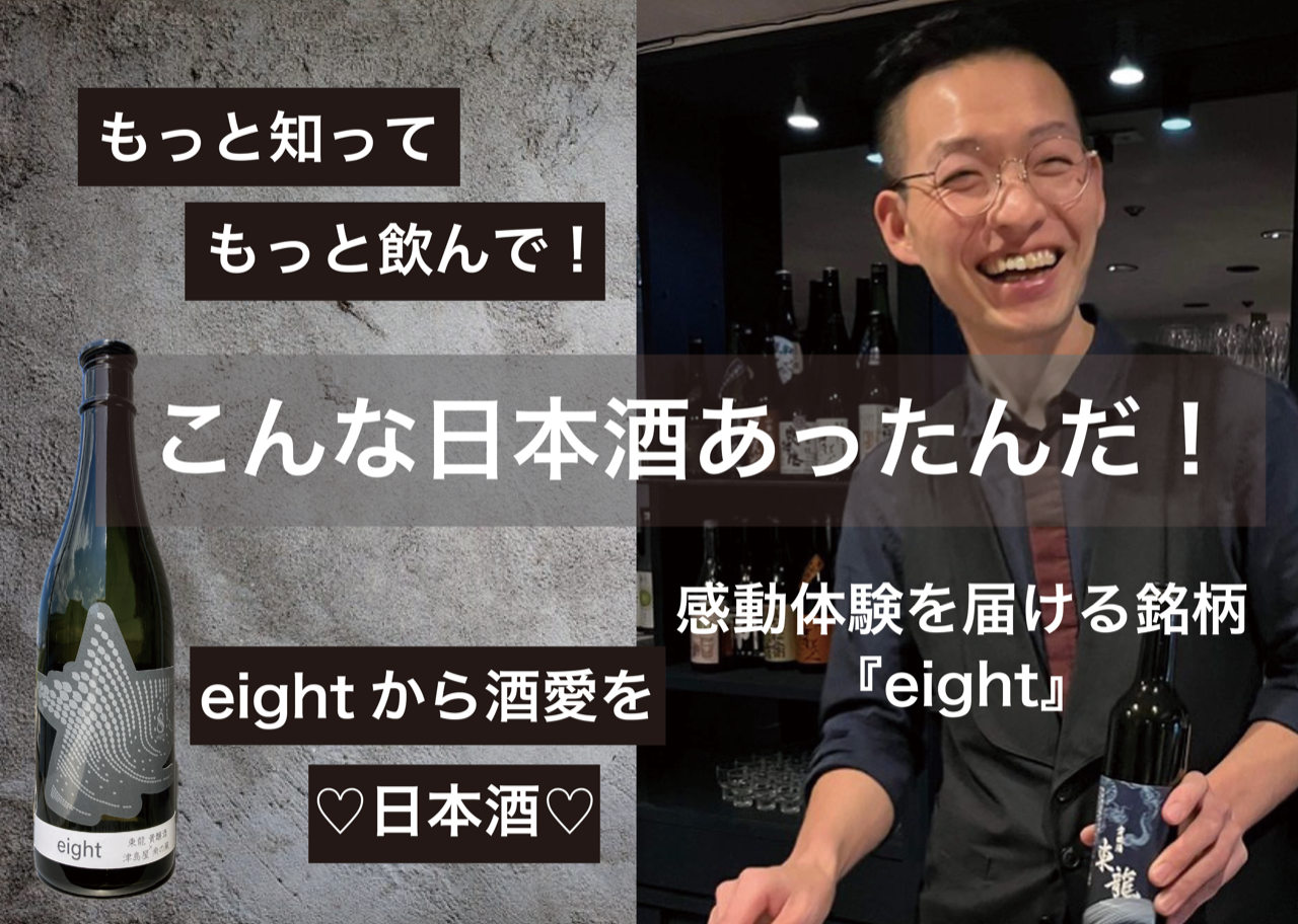 「何か日本酒の味わいを通して皆様に幸せな気分になってしまう日本酒を造りたい」との考えから、日本酒「eight」が誕生しました。