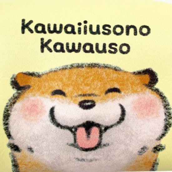 この表情がほんとうに癒されますよね♪まんまるのほっぺたもかなりの癒しポイントです。クレヨンや色鉛筆で描かれたような優しいタッチのポーチ!幸せのイエローカラーとカワウソがマッチしています。