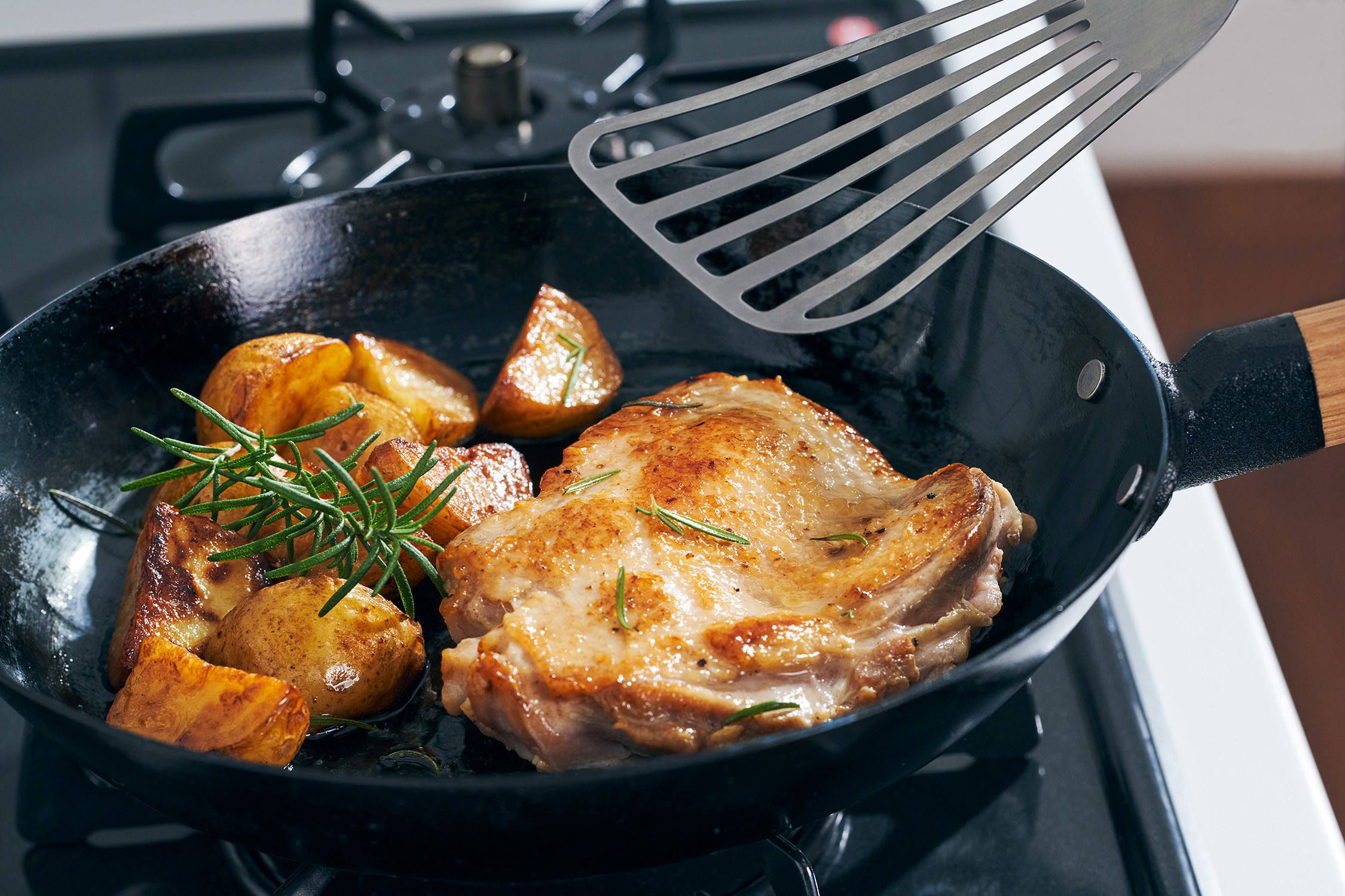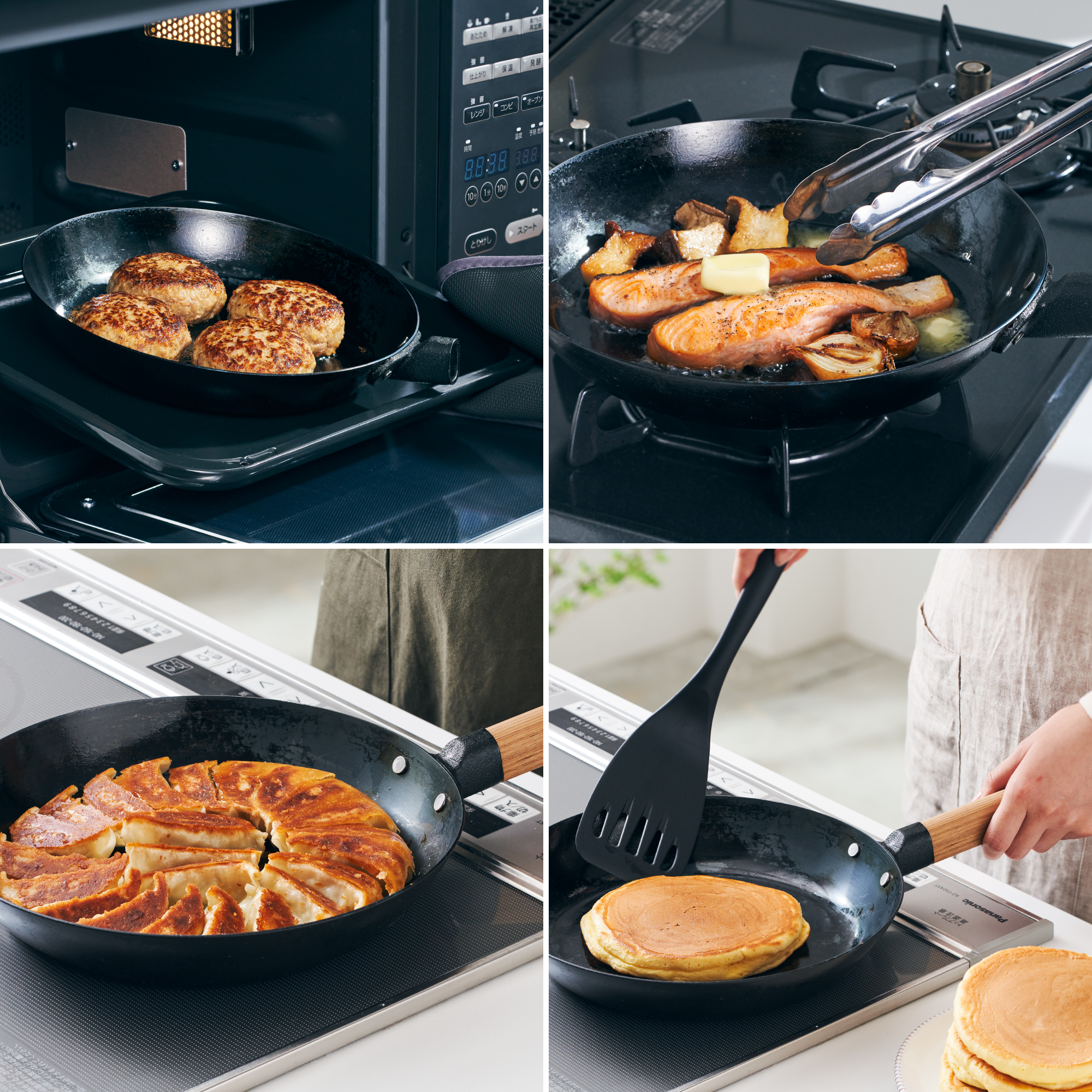 鉄素材の難点である焦げ付きや錆びも発生しにくく、使い始めから油が馴染みやすいため、毎日の料理で気軽に鉄フライパンをご使用いただけます。