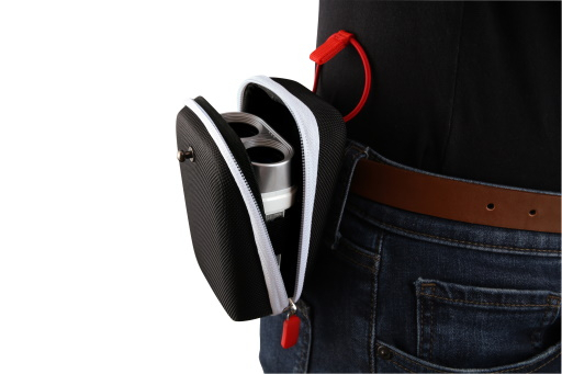 身に付けたまま出し入れしやすいクイック開閉式ハードケースが標準付属。プレイ中に機材を保護しながら、使いたい時にワンタッチで取り出せます。また、お手持ちのバッグやゴルフバッグにも取付けできるカラビナを装備しています。
