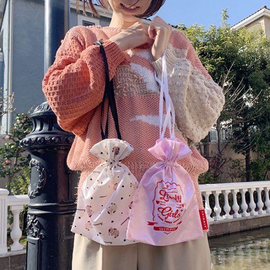 サテン地がリッチな巾着や、帆布の巾着トートバッグも必見ですよ。