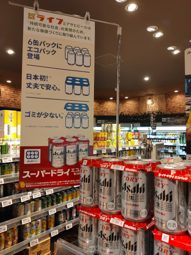 紙の使用面積を従来より約8割削減!「アサヒスーパードライ エコパック」をライフでテスト販売