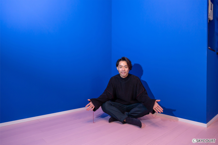 「前回のマンション一棟のプロデュース時は、いろんな方に受け入れられる部屋を考えましたが、今回は自分自身のやりたいことをやってみようと思った」という高橋選手が、トライしたデザインのテーマは「色遊びができる部屋」。色を強めに強調した部屋で、青とピンクを組み合わせたデザインだ。「派手な印象がありますが、意外に他の色と合わせるとまとまりやすい。