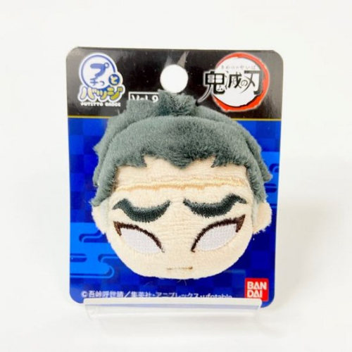 他にも、新商品がたくさん揃っています。こちらは悲鳴嶼行冥の、プチっとバッジ。53×58mmのコンパクトサイズで、先程のミニショルダーバッグにつけてワンポイントにしてもいいですよね。