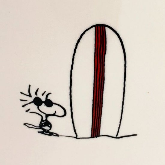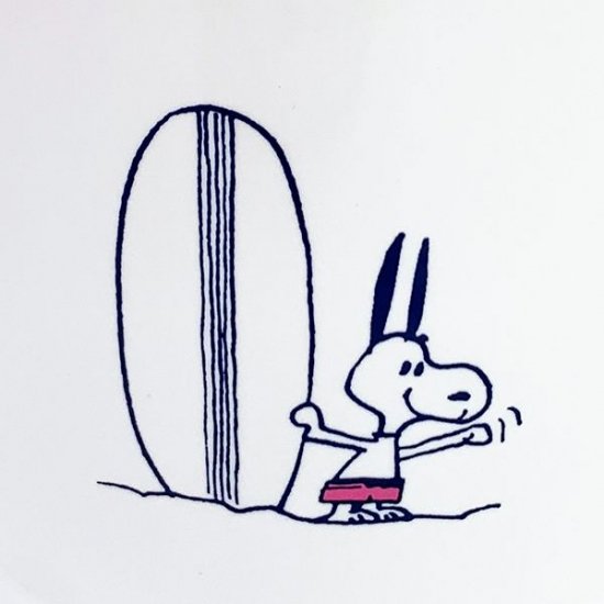 表にはサーフボードを持って走るスヌーピー、後ろには手招きをするスヌーピーが描かれています。耳がピーンと立っていて可愛いですね♡