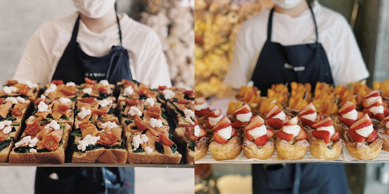 “100 One Hundred”の食パンを取り扱いながら、豊富なパンのラインナップをご用意。ティータイムには、“Espresso D Works”監修のパンケーキとパスタランチを提供します。