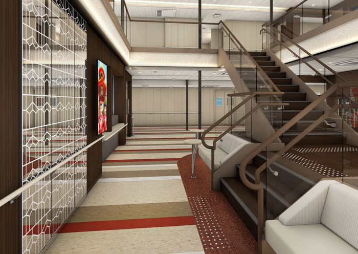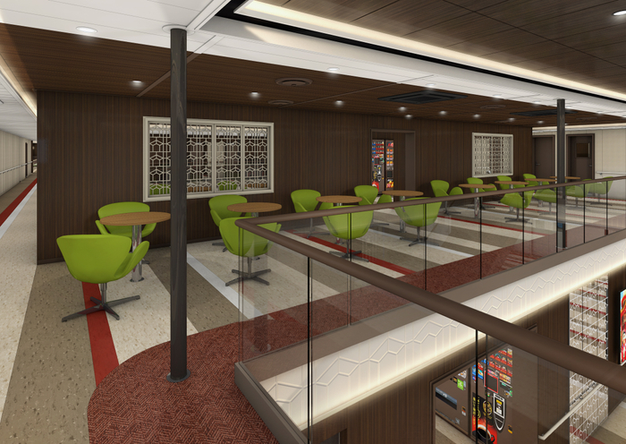 コンパクトなシングルルームは、プライベートな空間でお一人様の船旅もゆっくりとお過ごしいただけます。ドミトリールームは、各ベッドに間仕切りのカーテン付き。また、2段ベッドの登り降りをしやすくする階段を設置しました。ツーリストルームは、各席に間仕切りを設置し、クッションマットレスを敷いた広間タイプの客室。室内の段差を無くし、手摺を設置するなど、バリアフリーにも対応しています。