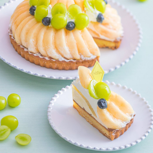 この時期だけのシャインマスカットと白桃を両方楽しめるタルト