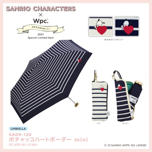【雨傘】ポチャッコハートボーダーmini ¥2,600(税込¥2,860)