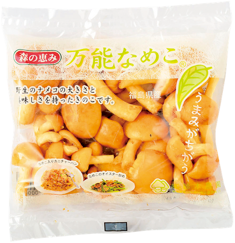 野菜コーナーで販売している福島県産鈴木農園の「万能なめこ」を使用。栄養豊富な培地で栽培され、大粒で香りが良くて旨味が強く、ぬめりが少ないのが特徴。