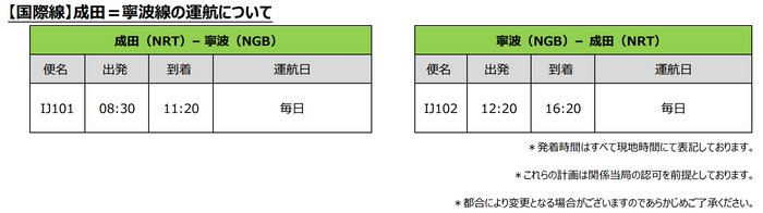 スプリング・ジャパン 国際線冬ダイヤ成田=寧波線販売開始について スプリング・ジャパン株式会社 2023-09-29 13:00 JALグループのLCCであるスプリング・ジャパン株式会社(以下:スプリング・ジャパン)は、2023年10月29日(日)から2024年3月30日(土)まで、成田=寧波線の毎日運航を決定し、本日15時より販売を開始します。 運賃およびダイヤの詳細につきましては、スプリング・ジャパン公式サイトをご覧ください。 ジャンル: 旅行・お出かけ 画像一覧 一括ダウンロード