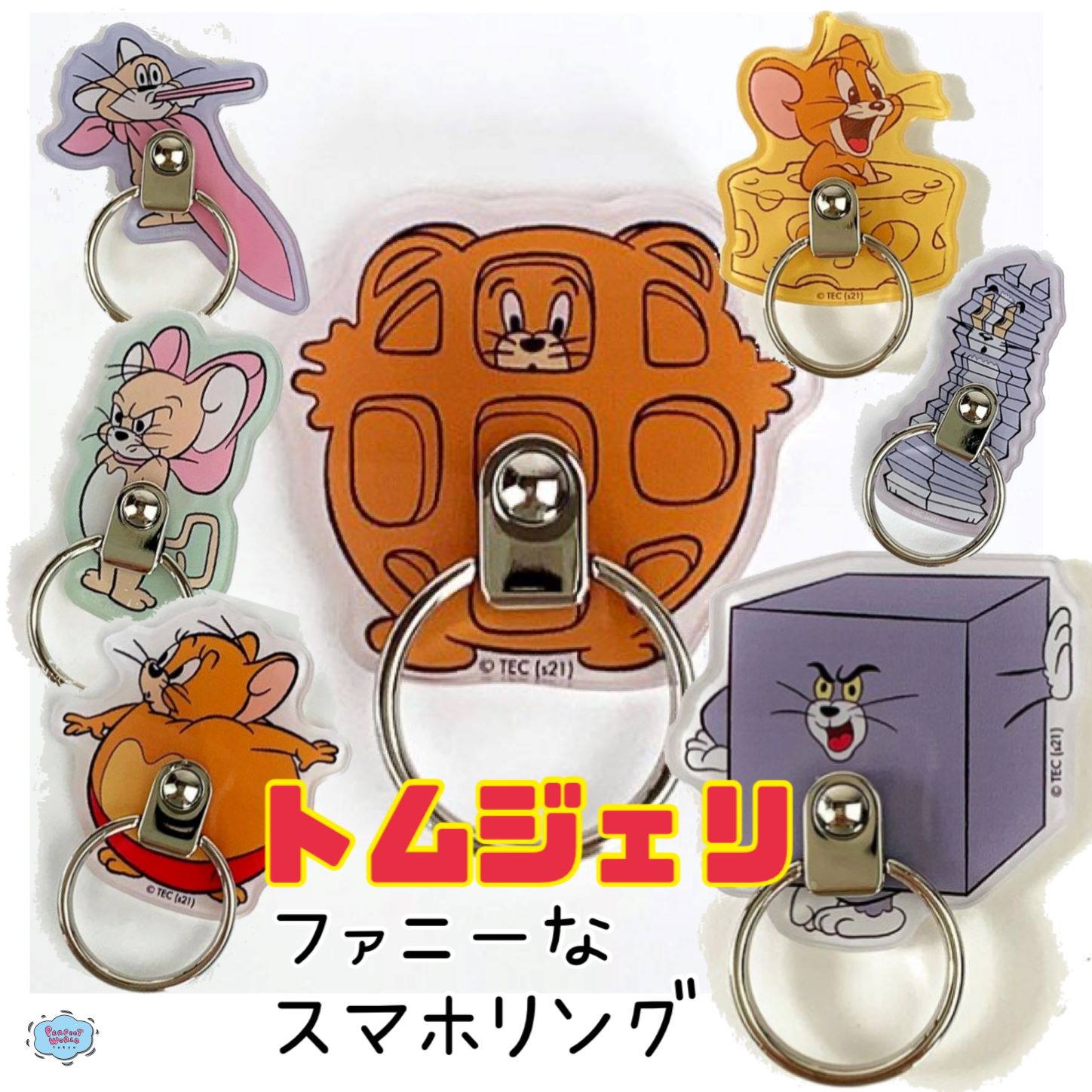 トムジェリのファニーなスマホリングはもうゲットした?なんと種類は10種類。すべてが個性的でかわいいから、スマホが一気に華やかに♪