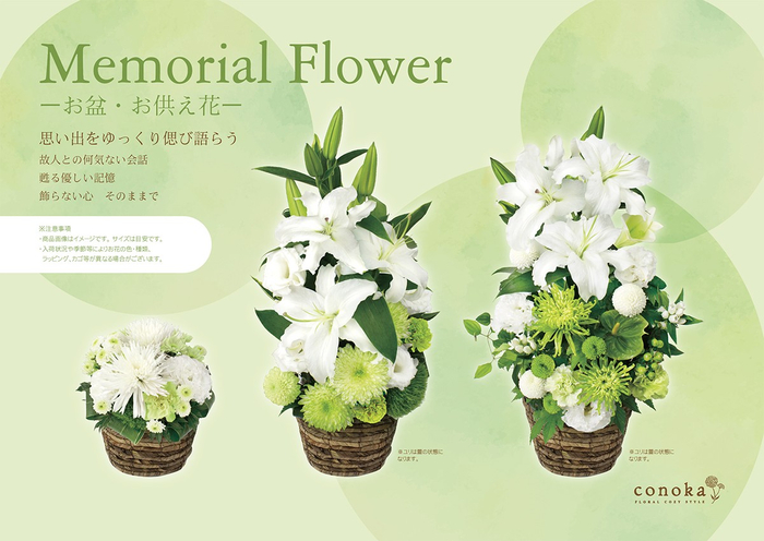 花の総合カンパニー「クリエイティブ・フラワー・コーポレーション株式会社」(本社:大阪市)が展開するフラワーショップブランド『conoka(コノカ)』は、2025年のお盆シーズンに向け、供花のWeb予約受付を7月25日(金)より開始いたします。