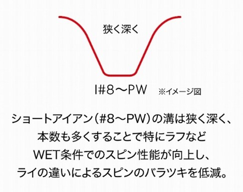 「番手別溝設計※2」が最適なスピンを生み出し、状況に応じたパフォーマンスを発揮します。
