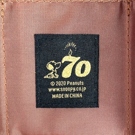 茶系のヘリンボーン素材が、レトロモダンな雰囲気♪スヌーピーたちのデザインも刺繍なので、高級感もありますね。