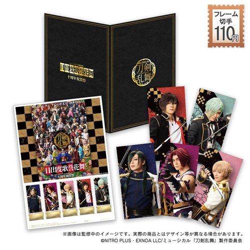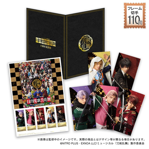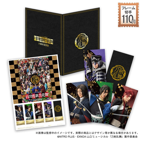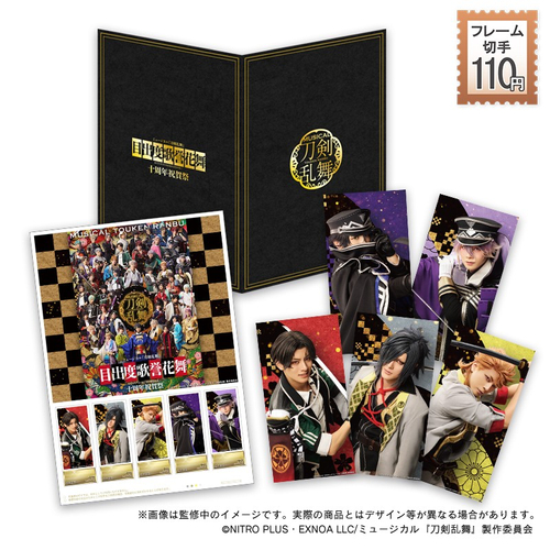 ミュージカル『刀剣乱舞』 目出度歌誉花舞 十周年祝賀祭を記念したフレーム切手セットが郵便局のネットショップに登場!総勢44振りの刀剣男士のビジュアルを使用し、全9種にビジュアルを振り分けて構成しています。十周年を彩る豪華仕様のセットとして、ファン必携の永久保存版です。