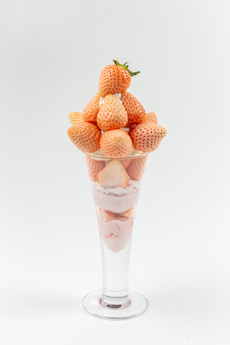 希少価値の高い白いちご「淡雪」を使ったフルーツピークスの大人気パフェ。昨年も大好評だったパフェがブラッシュアップして登場します。パフェグラスの上に桜の花びらが舞い降りたような春らしい色合いのパフェには、13粒の「淡雪」を贅沢に使用しています。苺チーズクリームの下には苺アイス、更にもう一度「淡雪」を詰め込んで苺ヨーグルトを注いだ、ピンク一色のいちごづくしにこだわった一品です。