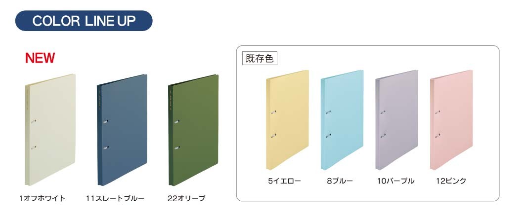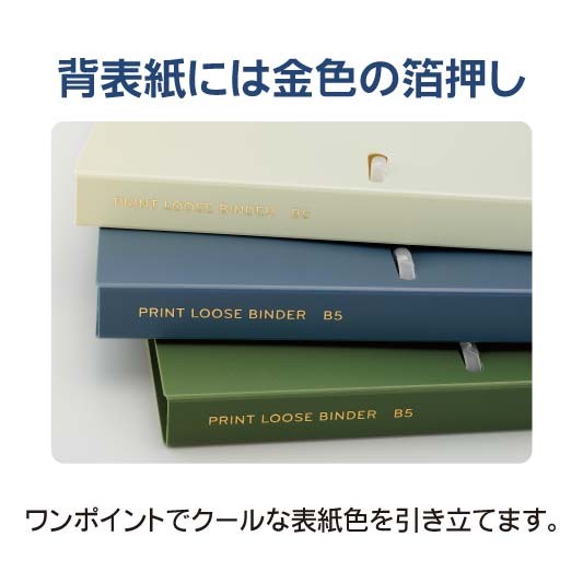 薄型のとじ具なのに100枚収容可能な「プリントルーズバインダー」に クールなカラーを追加して発売します。