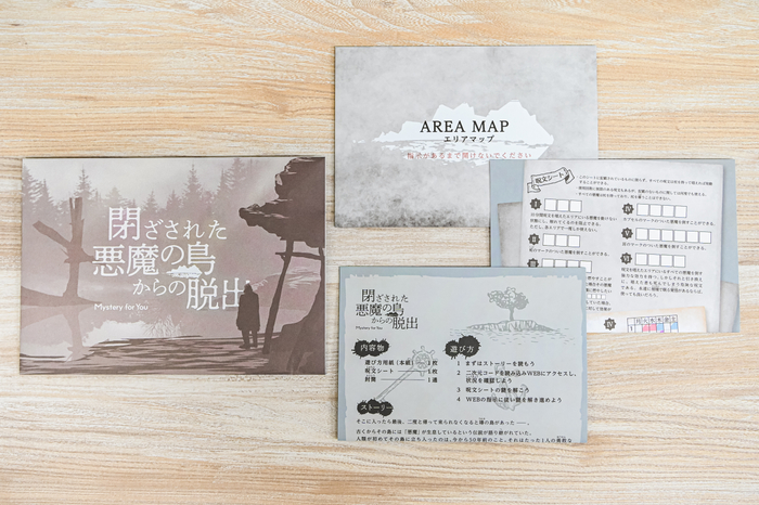 『Mystery for You』とは、簡単な10個の質問に答える「謎診断」でお客様の好みを分析し、あなたにぴったり合う謎や物語を毎月ご自宅にお届けするサービスです。ご自宅にお届けするのは、心温まるストーリー謎や、頭フル回転のパズル謎、折ったり切ったり仕掛けいっぱいの謎などさまざま。すべて、お好きな時間にお好きな場所でお楽しみいただけます。また、数々のリアル脱出ゲームや物語を生み出してきた選りすぐりのコンテンツディレクターたちが、本サービスでしか遊ぶことのできない謎と物語を制作しています。