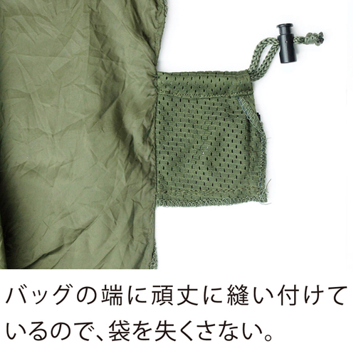 表地:ナイロン100% メッシュ:ポリエステル100% ひも:ポリエステル100%