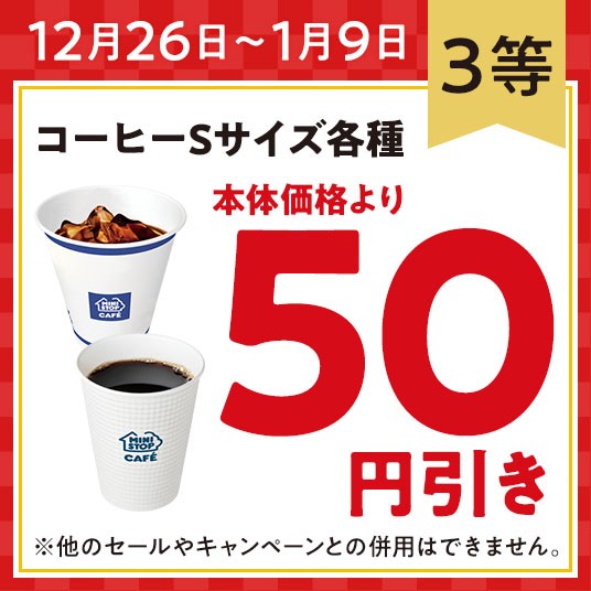 【ミニストップアプリ限定 アプリくじ】期間:2024年12月26日(木)~2025年1月5日(日) 対象地区:全国 (2024年11月末現在:1,820店)