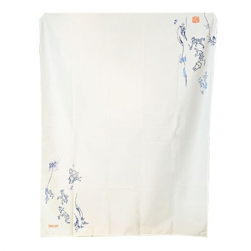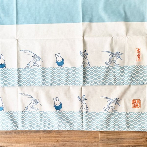 在庫希少すぎてご紹介できなかったのですが、こちらはテーブルクロス!残すところ5点以下になってしまいました。結構究極のお品物です。爽やかなライトブルー。青海波模様の上に、ミッフィーや鳥獣たちが楽しそうに踊っているようなデザイン♪