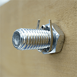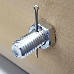 ナットの緩み防止と脱落防止目的で使用します。ボルトにナットを締めこんだ後に、ピン穴に割りピンを挿入します。震動や温度差が生じる場所に使用します。再利用はできません。