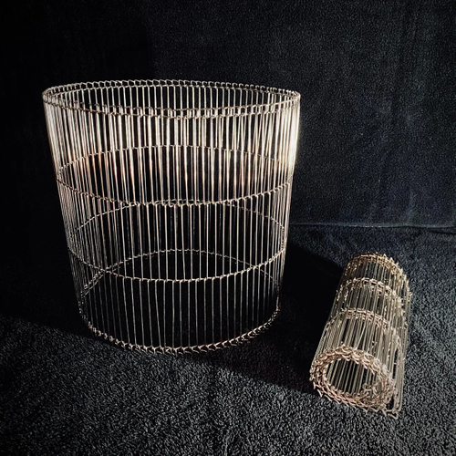 ステンレス線を独自の編み方で編み上げています。ロールしてストーブ内に収納可能なため嵩張りません。また、可変式のため余すことなくストーン形状に適合します。