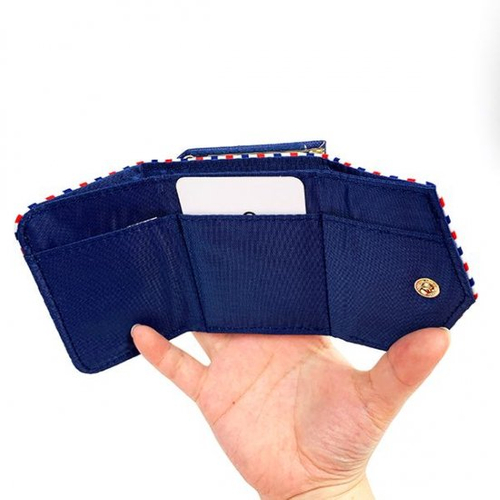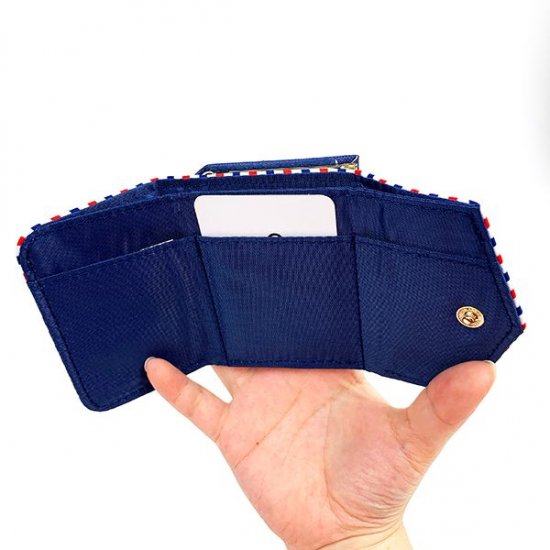 4つ目に紹介するのは、こちらの手紙のようなデザインが特徴のミニ財布です。紺色×赤色×白色で構成されたデザインが可愛いですよね。セーラー服を着てい居るチャーリーブラウンもいます。