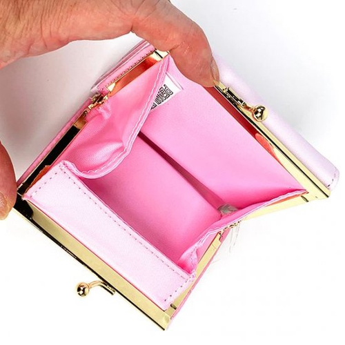 財布を開くとこのようになりますよ。裏地もピンクです。ピンクが好きな方は、とっても好みのデザインなのではないでしょうか?